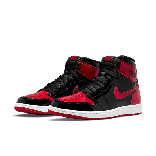 In the palette, the pair replicate it identically, with red and black dressing through the upper. Material-wise, though, each panel is built out of patent leather, contrasting the matte finish of the midsole and laces adjacent.